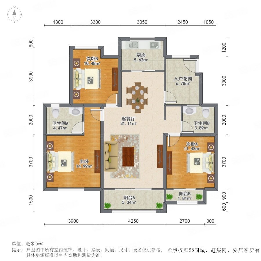 3室2廳2衛(wèi) 122m2